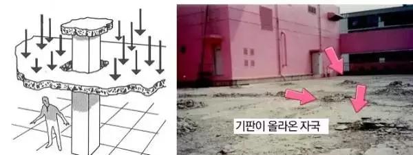 注:樓板下不設(shè)置梁,直接由柱子支撐。一個柱子的失穩(wěn)容易導(dǎo)致建筑連鎖破壞,對設(shè)計施工的要求相當高。